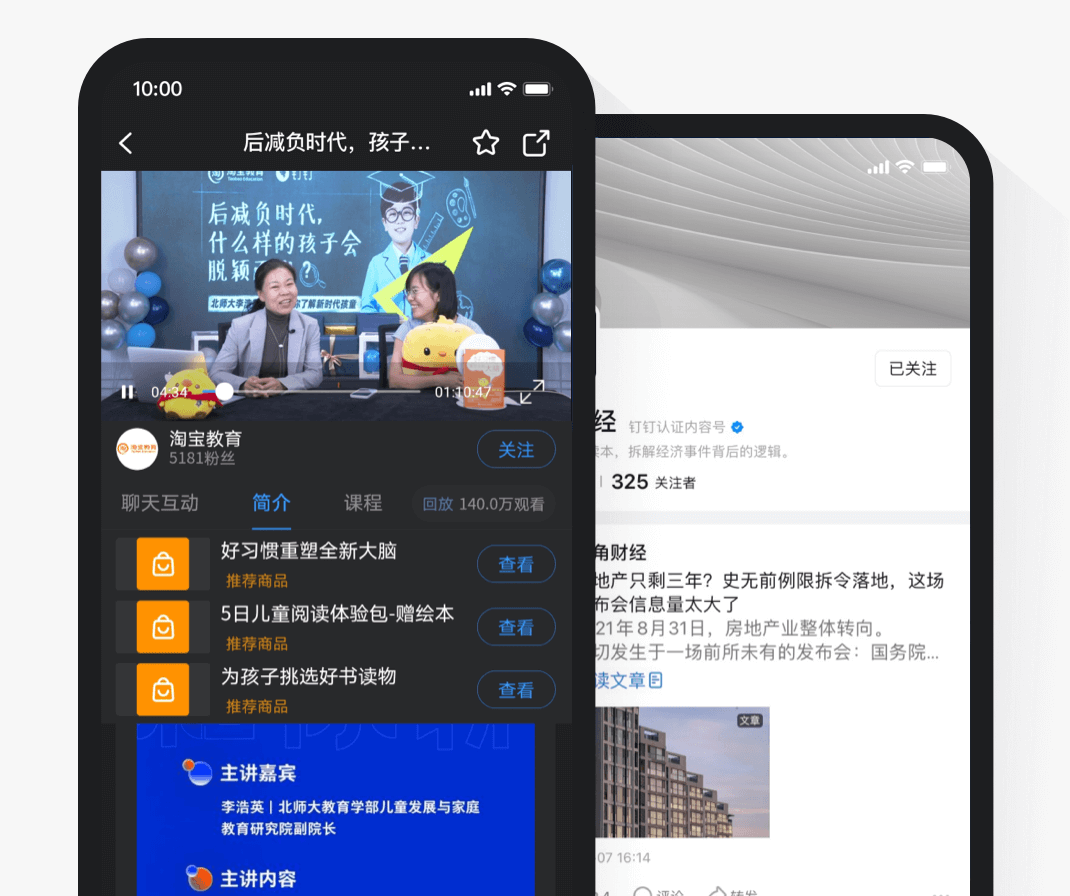 組織數字化 > 溝通 即時溝通 DING 視頻會議 電話會議 辦公電話 群直播 專注模式 互動消息 紅包主題 釘釘標簽 看看 圈子