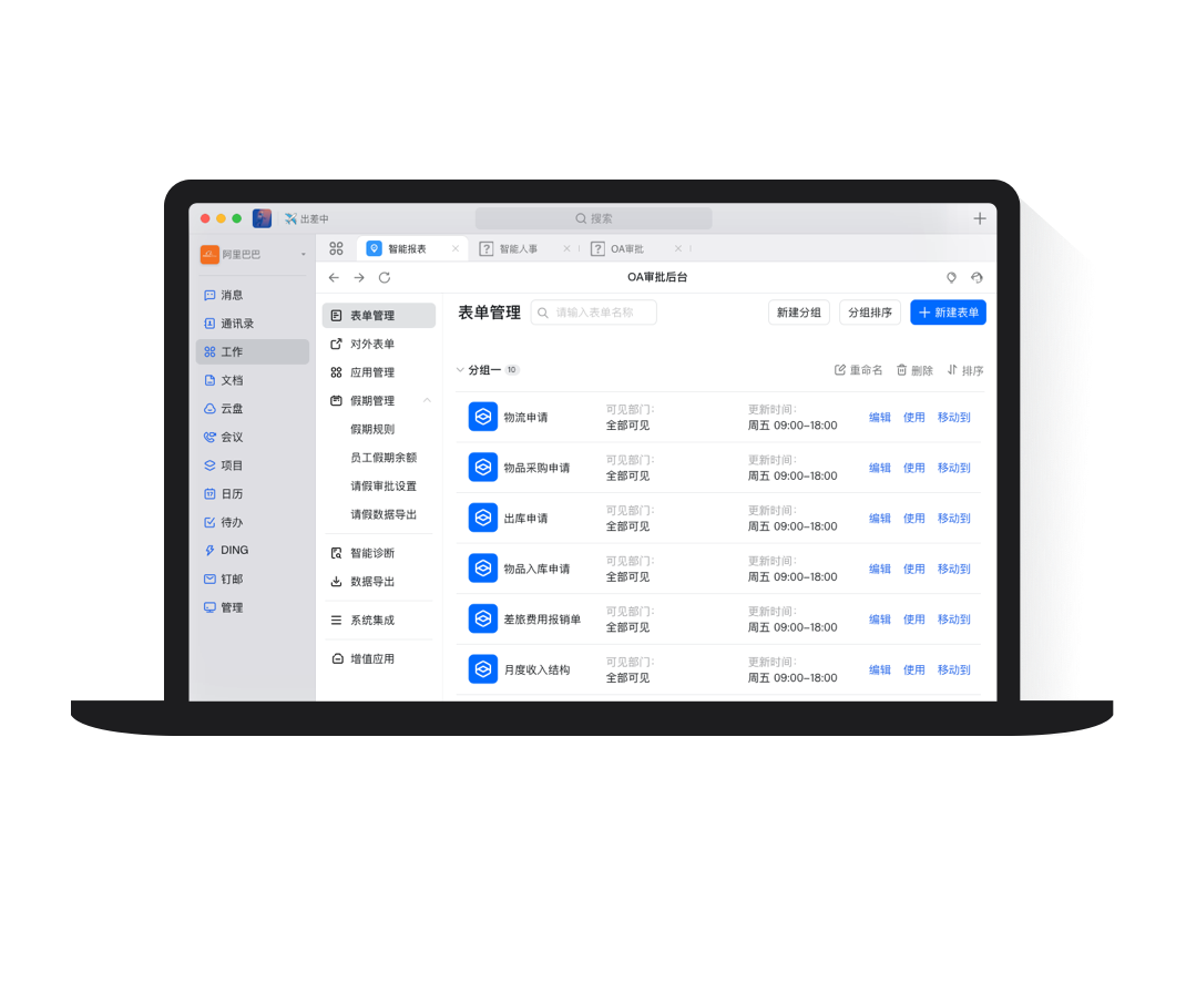釘釘OA審批 更智能、更簡單。一站式解決中小企業“人財物事”管理煩惱