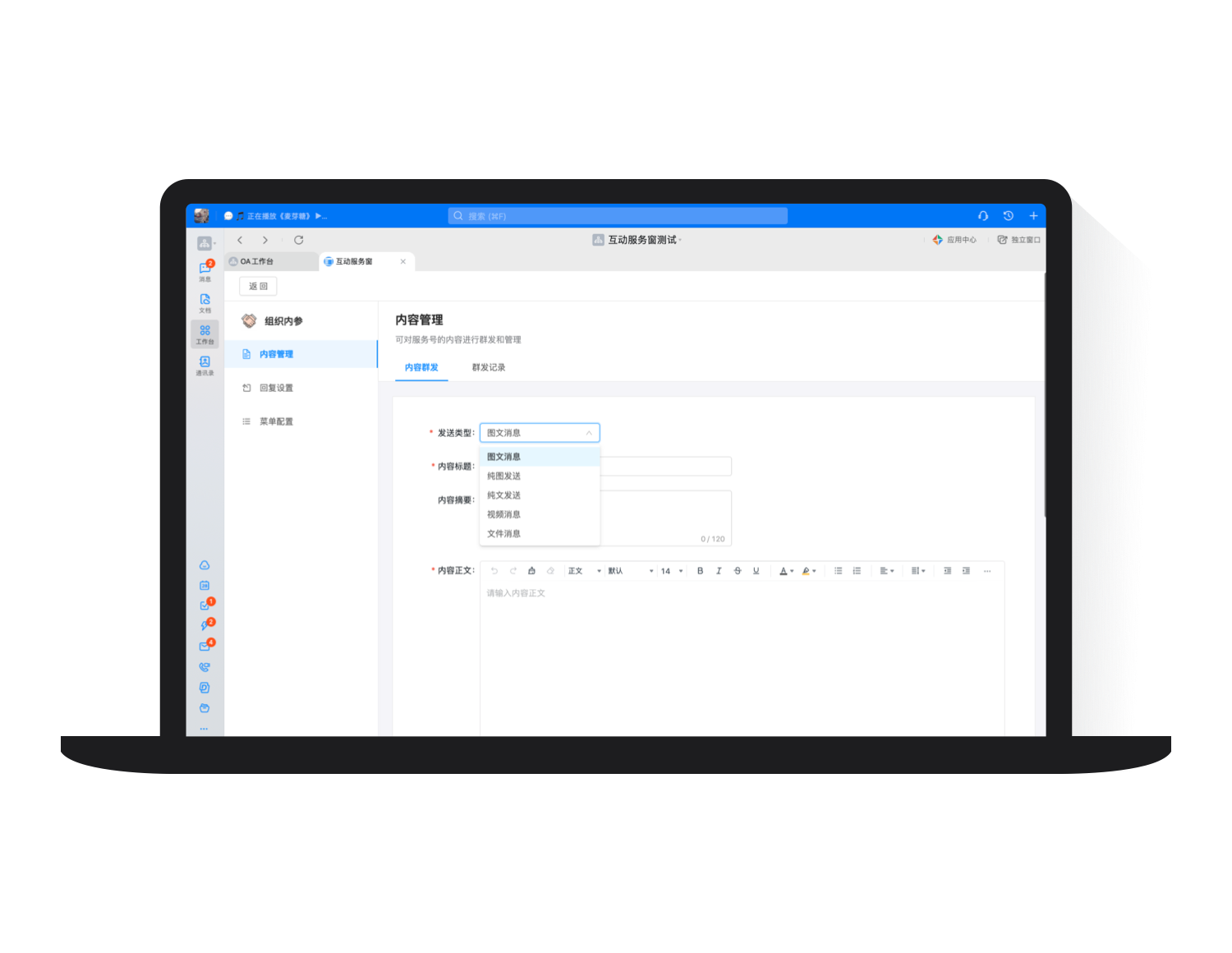 針對不同發送場景及特定人群, 提供不同消息類型。