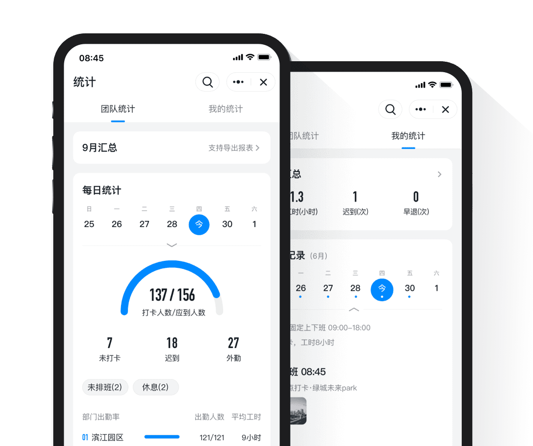 老板隨時(shí)了解團(tuán)隊(duì)狀態(tài)出差在外,通過手機(jī)統(tǒng)計(jì),也能隨時(shí)了解團(tuán)隊(duì)狀態(tài),遲到加班一目了然。