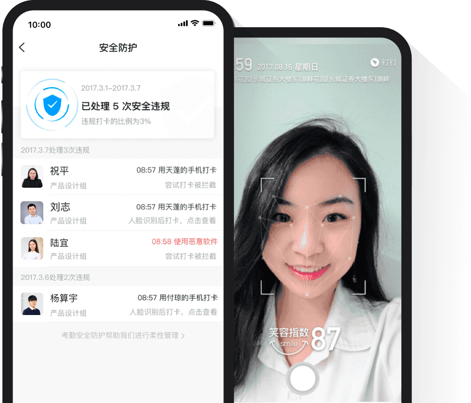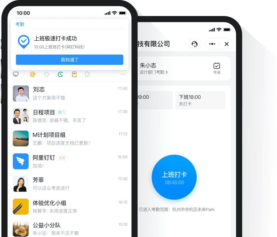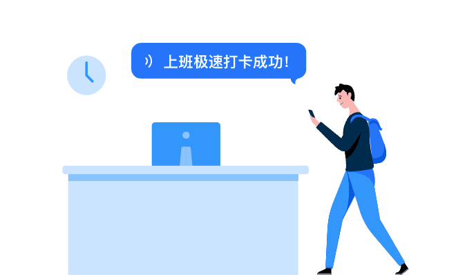 員工人性化考勤上班時(shí)間到公司,打開釘釘自動(dòng)打卡,再也不用擔(dān)心忘打卡了。